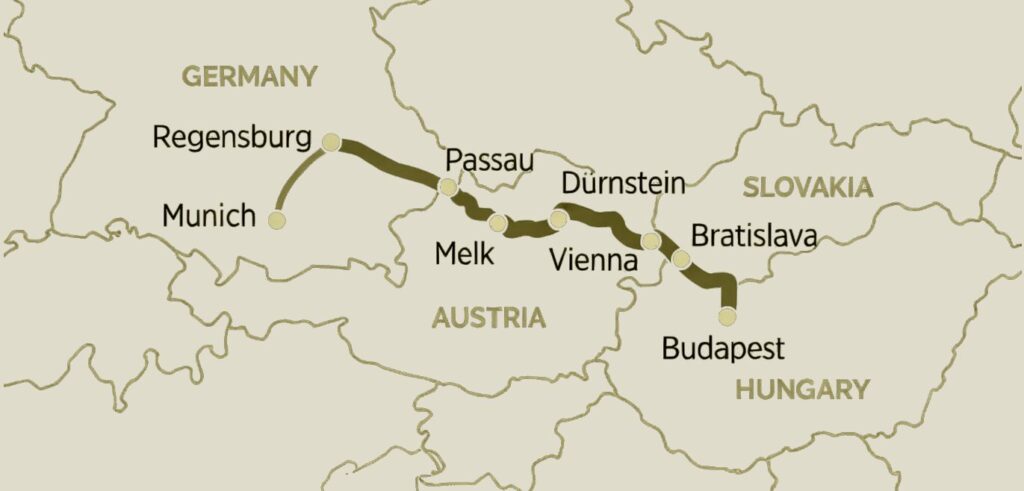 Partindo da Alemanha, seguimos o curso das águas até os mosteiros barrocos da Áustria, com uma pausa na medieval Bratislava, antes de nos deixarmos envolver pelo esplendor art nouveau de Budapeste.